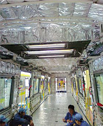 在側(cè)壁和頂棚的應(yīng)用事例中,Greencos綠寰宇多型號吸聲隔熱泡綿板的低熱能傳導性顯示出高效隔熱的性能。例如,空調(diào)載客車的運行費用因此可以得到很大程度的降低。